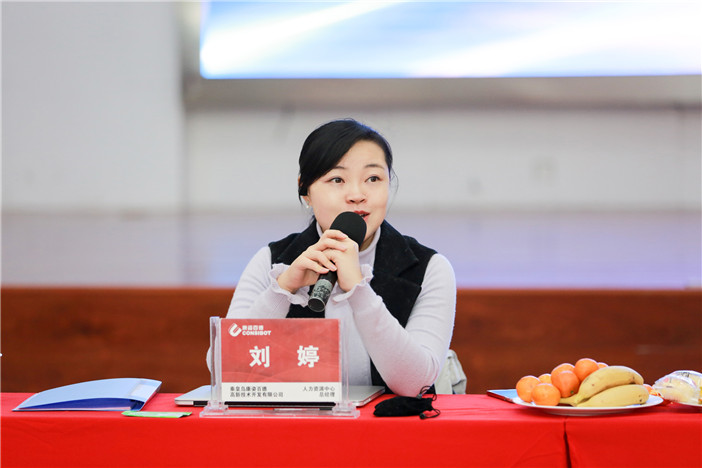 人力資源中心總經(jīng)理劉婷與參會人員交流互動