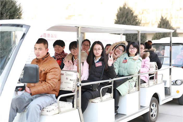 乘觀光車參觀康姿百德自動化生產(chǎn)線