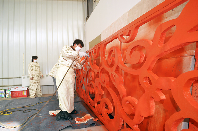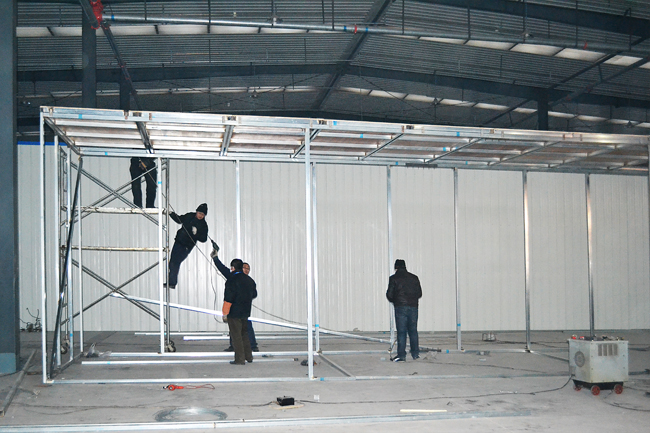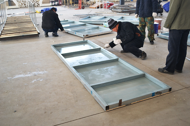 近日,中央電視臺《過年七天樂》節(jié)目錄制準(zhǔn)備工作緊張有序的進(jìn)行著。為減輕節(jié)目組的壓力,秦皇島康姿百德高新技術(shù)開發(fā)有限公司制造中心機(jī)修組主動承擔(dān)了舞臺背景的制作任務(wù)。 制造中心現(xiàn)場總指揮張振忠經(jīng)理介紹:“舞臺背景氣勢宏偉,運(yùn)用了燈籠、瓷器、木雕、中國結(jié)、山水畫、鏤空屏風(fēng)、青磚墻等豐富的中國文化元素進(jìn)行布局裝飾,工程量和工藝難度非產(chǎn)大。時間緊、任務(wù)重,要不打折扣的實現(xiàn)圖紙的設(shè)計風(fēng)格,我們的壓力山大啊”。 1500平方米的制造車間內(nèi),機(jī)器轟鳴、電焊火花四濺,一派繁忙景象。工人們手持電焊機(jī)、切割機(jī)、雕刻機(jī)、角磨機(jī)、電鉆、手提鋸、曲線鋸、自制刀剪等十八般武器,各顯神通。從28日晚上8點接到任務(wù)到31日晚8點,制造中心的50多名工人每天都要忙碌到凌晨3點。 工作人員經(jīng)過三天奮戰(zhàn),于31日晚8點完成舞臺背景制作任務(wù),并于當(dāng)晚運(yùn)到《過年七天樂》錄制現(xiàn)場組裝。