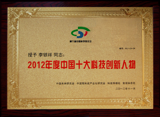 董事長(zhǎng)李銀祥榮獲“2012年度中國十大科技創(chuàng)新人物”獎(jiǎng)