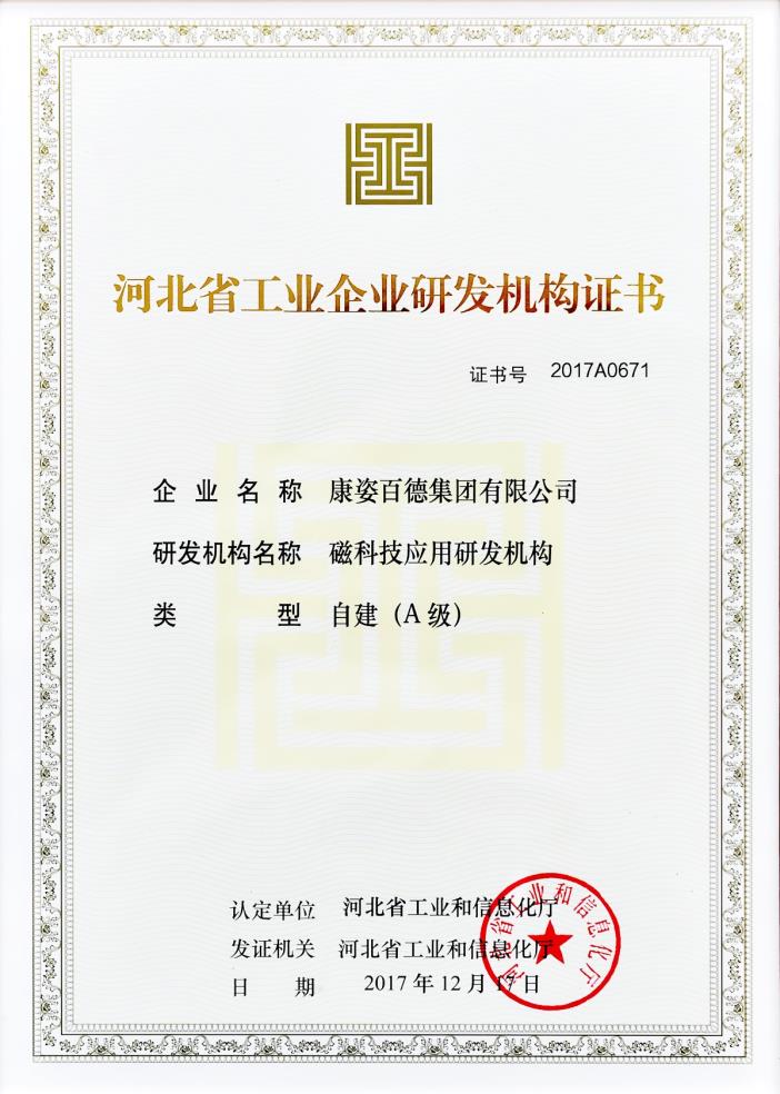 日前,經(jīng)河北省工業(yè)和信息化廳審定,康姿百德集團(tuán)入選河北省工業(yè)企業(yè)研發(fā)機(jī)構(gòu)名單,被認(rèn)定為磁科技應(yīng)用研發(fā)機(jī)構(gòu)(A級(jí))。