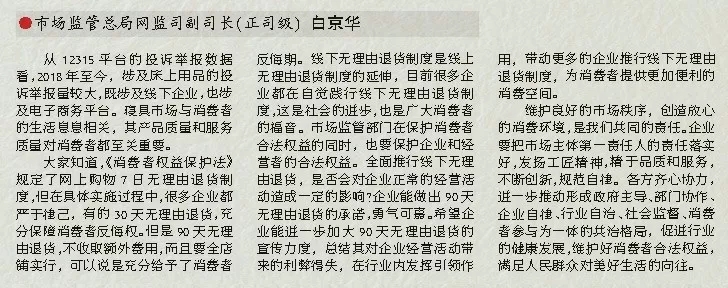 大家知道,《消費(fèi)者權(quán)益保護(hù)法》規(guī)定了網(wǎng)上購(gòu)物7日無(wú)理由退貨制度,但在具體實(shí)施過(guò)程中,很多企業(yè)都嚴(yán)于律己,有的30天無(wú)理由退貨,充分保障消費(fèi)者反悔權(quán)。但是90天無(wú)理由退貨,不收取額外費(fèi)用,而且要全店鋪實(shí)行,可以說(shuō)是充分給予了消費(fèi)者反悔期。線(xiàn)下無(wú)理由退貨制度是線(xiàn)上無(wú)理由退貨制度的延伸,目前很多企業(yè)都在自覺(jué)踐行線(xiàn)下無(wú)理由退貨制度,這是社會(huì)的進(jìn)步,也是廣大消費(fèi)者的福音。市場(chǎng)監(jiān)管部門(mén)在保護(hù)消費(fèi)者合法權(quán)益的同時(shí),也要保護(hù)企業(yè)和經(jīng)營(yíng)者的合法權(quán)益。全面推行線(xiàn)下無(wú)理由退貨,是否會(huì)對(duì)企業(yè)正常的經(jīng)營(yíng)活動(dòng)造成一定的影響?企業(yè)能做出90天無(wú)理由退貨的承諾,勇氣可嘉。希望企業(yè)能進(jìn)一步加大90天無(wú)理由退貨的宣傳力度,總結(jié)其對(duì)企業(yè)經(jīng)營(yíng)活動(dòng)帶來(lái)的利弊得失,在行業(yè)內(nèi)發(fā)揮引領(lǐng)作用,帶動(dòng)更多的企業(yè)推行線(xiàn)下無(wú)理由退貨制度,為消費(fèi)者提供更加便利的消費(fèi)空間。