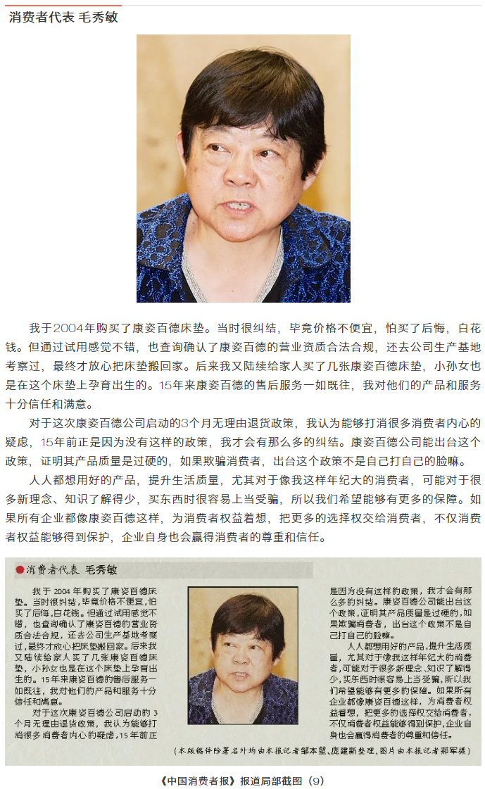 我國(guó)消費(fèi)者權(quán)益保護(hù)工作是自上而下來(lái)推進(jìn)的。在這種情況下,作為經(jīng)營(yíng)者的康姿百德能夠主動(dòng)站出來(lái)以自下而上的方式保護(hù)消費(fèi)者權(quán)益,并促使更多企業(yè)參與到消費(fèi)者權(quán)益保護(hù)的過(guò)程中來(lái),是值得大力倡導(dǎo)的。