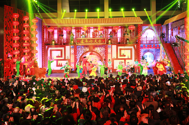 2013年1月3日晚,盧龍縣體育館內(nèi)張燈結(jié)彩,嘉賓滿座,笑語(yǔ)滿堂,中央電視臺(tái)《過(guò)年七天樂(lè)》節(jié)目在這里開(kāi)機(jī)錄制。央視“名嘴”老畢的幽默風(fēng)趣,賺盡現(xiàn)場(chǎng)3000多名觀眾的歡聲笑語(yǔ),三個(gè)半小時(shí)的節(jié)目錄制圓滿成功。