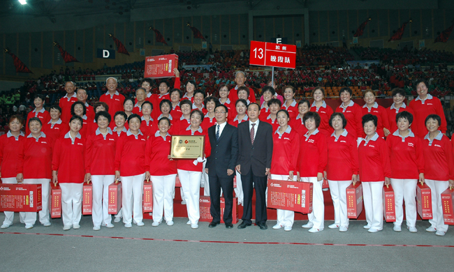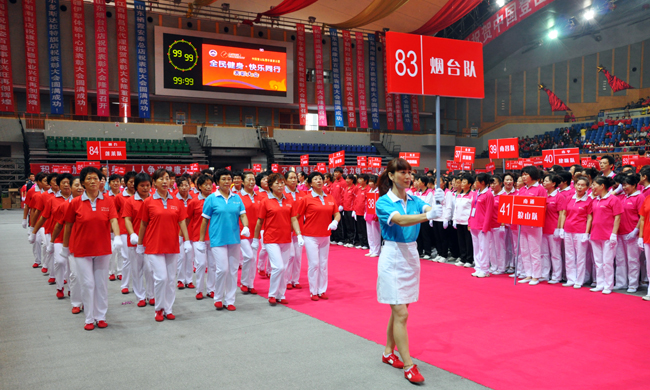 為了檢閱“全民健身 快樂同行”大型公益活動的成果,表彰大會特別安排了康姿百德健身操比賽環(huán)節(jié)。94個代表隊共3000多人,他們士氣昂揚、精神抖擻地展現(xiàn)著自己的風(fēng)采。各個方隊身著色彩鮮艷的運動服裝,手持彩旗,動作整齊劃一,場面蔚為壯觀。展演比賽的隊員中既有80歲老人也有8歲的孩童,真正體現(xiàn)了全民健身的精神,康姿百德健身操的普及,讓康姿百德“立體健康”概念深入人心。經(jīng)過1個多小時的風(fēng)采展示,山東濱州晚霞隊拔得頭籌,榮獲一等獎;北京順義隊、北京通州隊榮獲二等獎;北京門頭溝隊、河北武安夕陽紅隊、北京昌平隊榮獲三等獎。