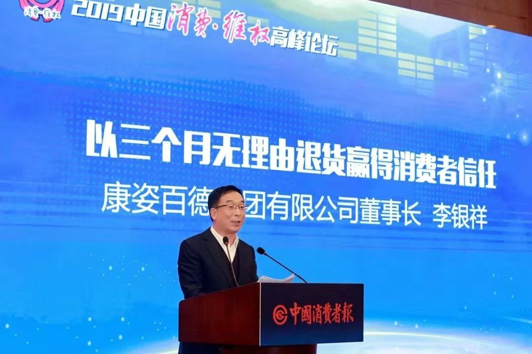 “中國消費·維權(quán)高峰論壇”是市場監(jiān)管總局組建以來召開的第一個,也是中國目前唯一一個以消費維權(quán)為主題的行業(yè)論壇??底税俚录瘓F受邀參加2019年“中國消費·維權(quán)高峰論壇”,董事長李銀祥作為保障消費者權(quán)益的優(yōu)秀企業(yè)代表出席活動,并發(fā)表了主題演講。