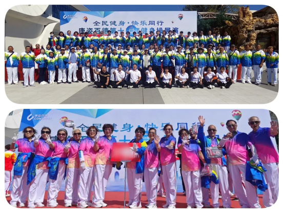 健身操愛(ài)好者身著統(tǒng)一服裝,和著動(dòng)感歡快的音樂(lè),踏著輕快自信的舞步,以飽滿的熱情、流暢的動(dòng)作、豐富的表現(xiàn)力,為大家呈現(xiàn)出一場(chǎng)肢體與律動(dòng)的完美盛宴,讓大家充分感受到了全民健身的快樂(lè)與魅力,也贏得了在場(chǎng)領(lǐng)導(dǎo)及觀眾的陣陣掌聲。