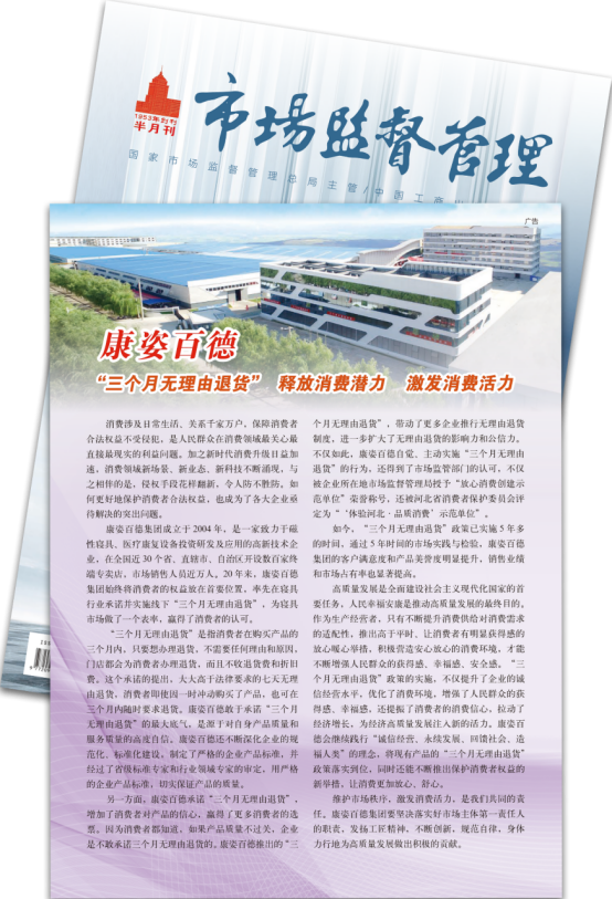 12月15日,《市場監(jiān)督管理》半月刊再次以《康姿百德“三個月無理由退貨”--釋放消費潛力 激發(fā)消費活力》為題,全面、詳細地報道了康姿百德。