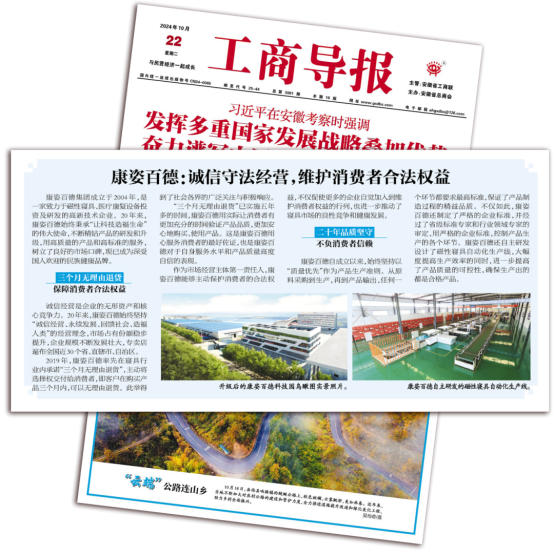 《工商導報》是安徽省工商聯(lián)主管,安徽省總商會主辦的面向全國公開發(fā)行的報刊?!豆ど虒蟆芬浴翱底税俚拢赫\信守法經(jīng)營,維護消費者合法權益”為題對康姿百德進行報道。