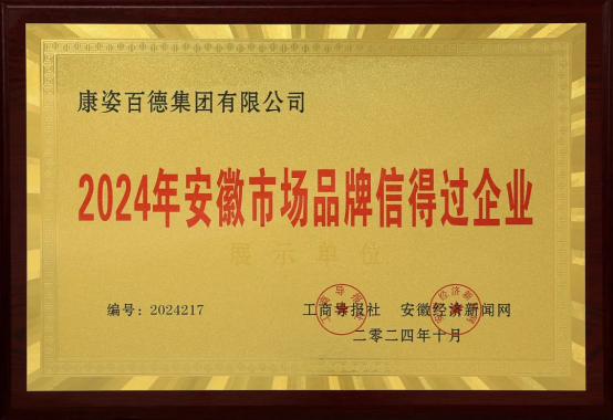 “2024年安徽市場品牌信得過企業(yè)”榮譽稱號