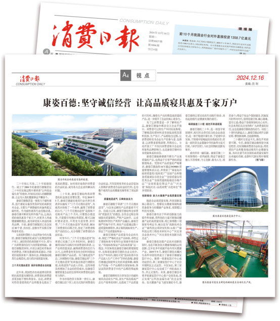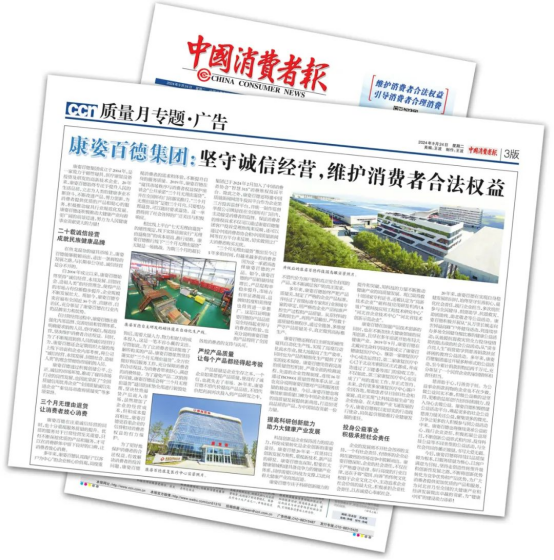 “3·15”國際消費者權益日當天,康姿百德以誠信經(jīng)營、積極維護消費者合法權益的良好社會形象,連續(xù)8年榮登《中國消費者報》。這充分說明康姿百德在誠信自律、維護消費者合法權益等方面的努力和付出,得到了社會各界的廣泛認可。