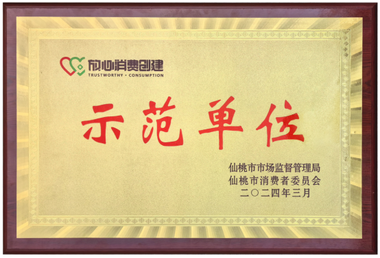 12 仙桃康姿百德榮獲"放心消費創(chuàng)建示范單位"榮譽稱號