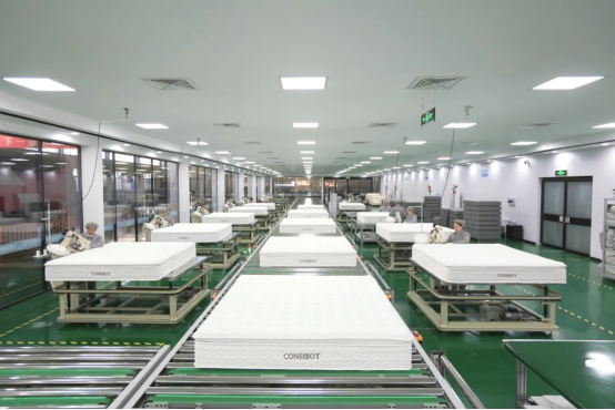 在康姿百德自動化生產(chǎn)車間內(nèi),分別設(shè)置有豪華床墊生產(chǎn)線、清雅床墊生產(chǎn)線、典雅床墊生產(chǎn)線以及柔壓磁性枕生產(chǎn)線。