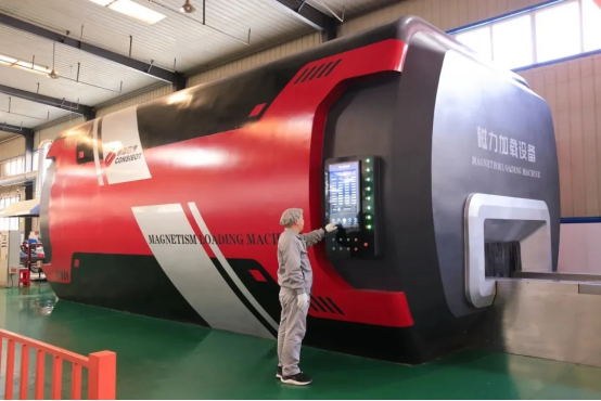 磁力加載設(shè)備是磁性寢具自動(dòng)化生產(chǎn)線的重要組成部分,是由康姿百德集團(tuán)自主研發(fā)、設(shè)計(jì)的??底税俚麓帕虞d設(shè)備全長15米,寬5米,高4米。設(shè)備外觀采用工業(yè)美學(xué)設(shè)計(jì),融入現(xiàn)代化工藝及設(shè)計(jì)元素,展現(xiàn)了康姿百德集團(tuán)科技、智能、高端的品牌形象。