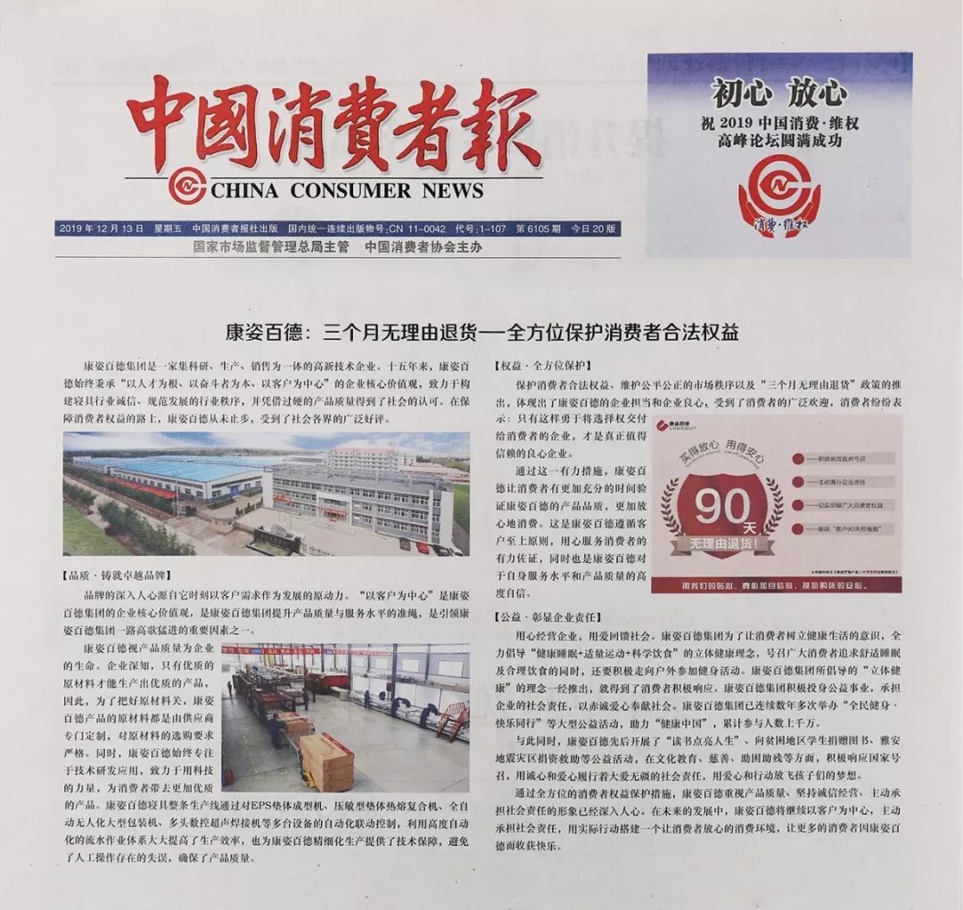 《中國消費(fèi)者報(bào)》對此次座談會進(jìn)行了專題報(bào)道??底税俚录瘓F(tuán)董事長李銀祥作為優(yōu)秀企業(yè)代表,受邀出席本次座談會,并就“三個(gè)月無理由退貨推行四年來取得的成果”進(jìn)行了交流和分享。