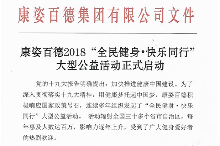 康姿百德2018“全民健身?快樂同行”大型公益活動正式啟動,公告全文如下:...